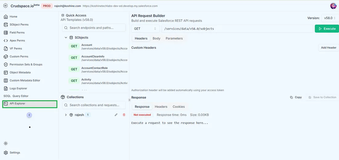 The API Explorer is more than just a feature — it's a core part of our vision for crudspace.io as the ultimate all-in-one workspace for Salesforce professionals. By bringing essential tools like API testing directly into the platform, we help you stay in your flow state and achieve more.