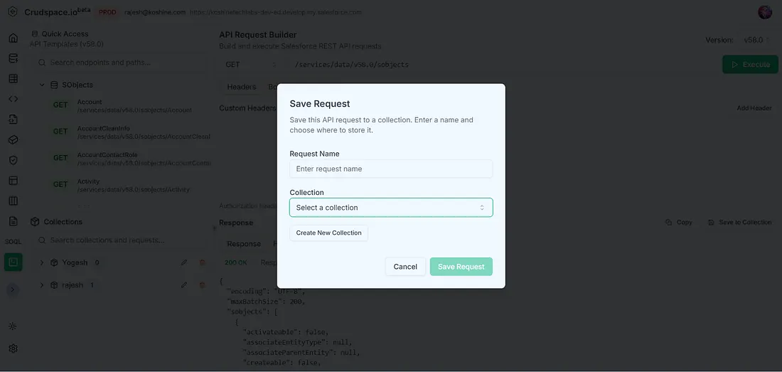 - Pre-built Templates for Speed: Instantly access common Salesforce endpoints for SObjects, Bulk API, Composite API, and more.